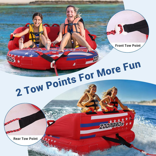 ZOOMBROS Towable Tubes for Boating 2-3Person, Front/Back Tow Points Sofa Style Boat Tubes and Towables, Holds 340-510 lbs Large Capacity, Premium Nylon Cover, Perfect for Kids & Adults