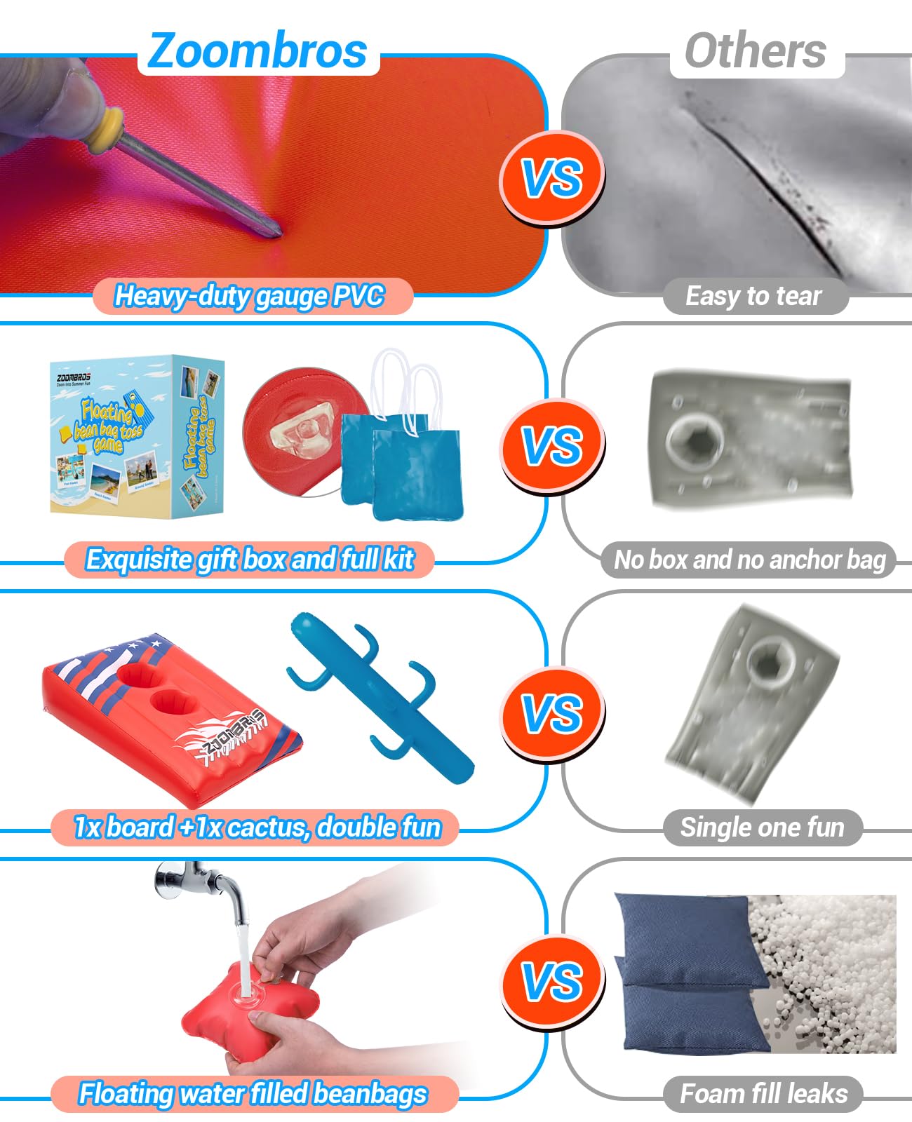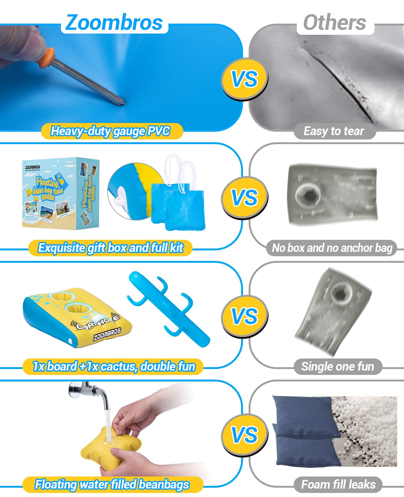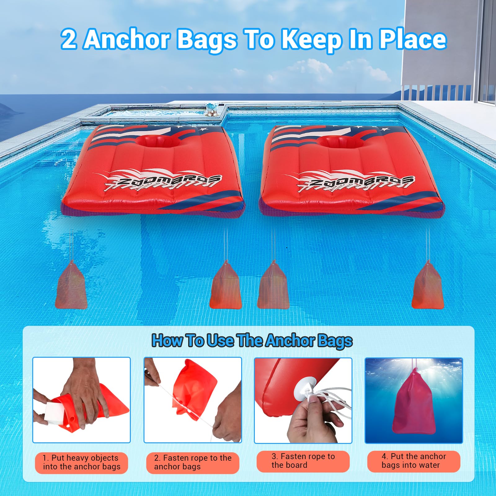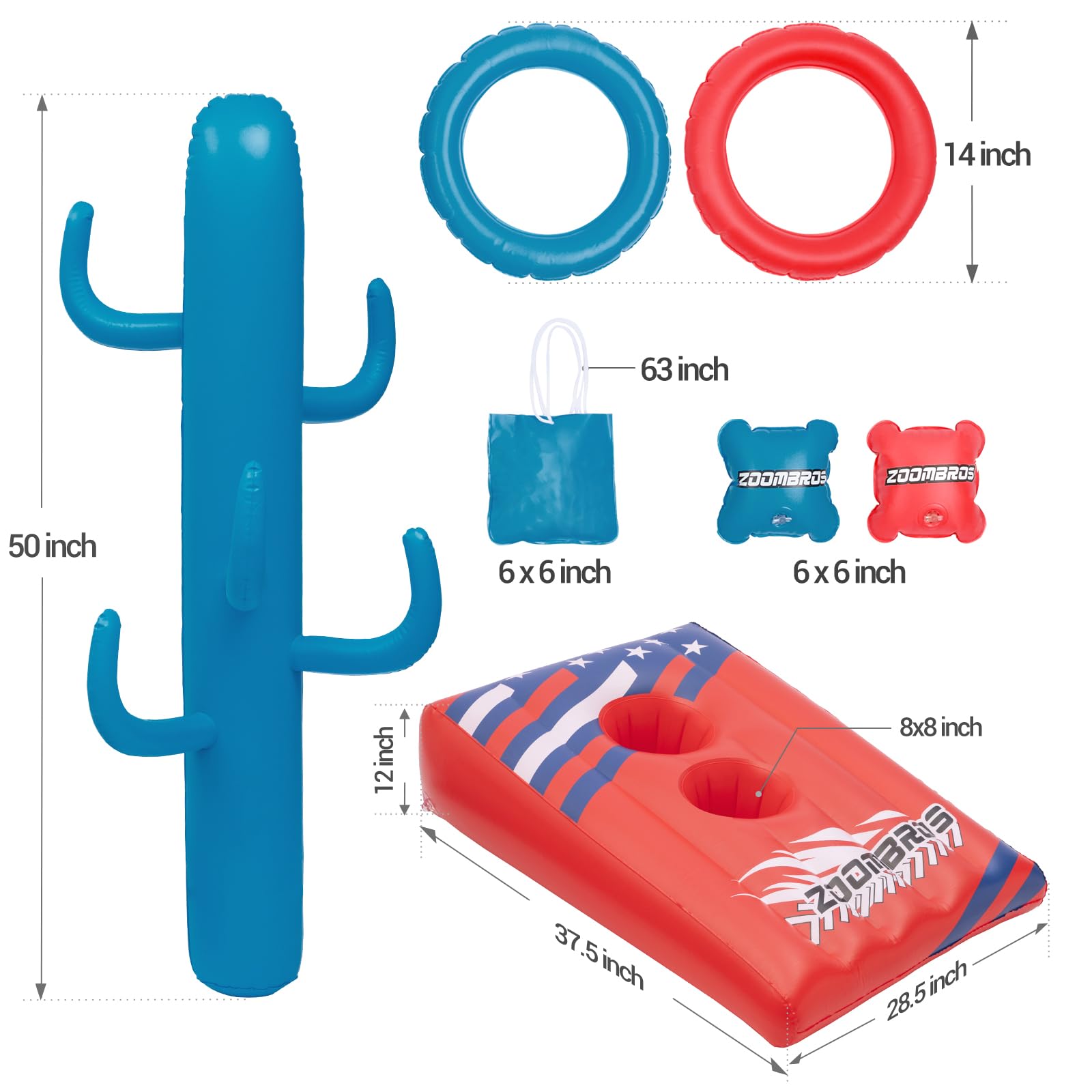This 2in1 Pool Floating Cornhole set promises a fun-filled day of poolside entertainment with both cornhole and ring toss games. While it certainly delivers on the fun factor, there are a few things to consider before taking the plunge.Pros:* Versatile Entertainment: The combination of cornhole and ring toss makes this set great for a variety of ages and skill levels.* Durable Construction: The inflatable base is sturdy and designed for water use, offering a stable platform for gameplay.* Plenty of Accessories: The set comes with six bean bags and additional anchor bags for added stability, ensuring everyone has a chance to play.* Easy to Store: The inflatable design allows for easy storage and portability, making it perfect for pool parties or beach trips.Cons:* Limited Space: The inflatable base might not be suitable for larger groups, as it offers a limited playing area.* Stability Concerns: While the anchor bags help, the inflatable base can be susceptible to movement in choppy water, potentially disrupting gameplay.* Durability Concerns: The inflatable nature of the base makes it prone to punctures or tears, especially with rough handling.This 2in1 Pool Floating Cornhole set is a fun and engaging addition to any pool party. The versatility and ease of use make it a good option for families and groups with diverse skill levels. However, the limited playing area and potential stability issues might be drawbacks for larger groups or more competitive players.Recommendations:* Invest in a pump: The set doesn't come with a pump, so you'll need to purchase one separately.* Use caution in choppy water: The stability of the base can be compromised in rough water, so be mindful of conditions.* Consider a more robust alternative: If you're looking for a more durable option, traditional cornhole boards might be a better long-term investment.This 2in1 Pool Floating Cornhole set delivers on its promise of fun, but it's not without flaws. It's a great option for casual poolside entertainment, but might not be suitable for competitive play or large groups.